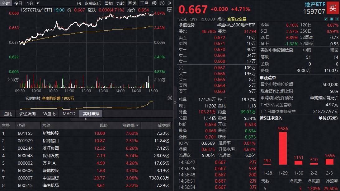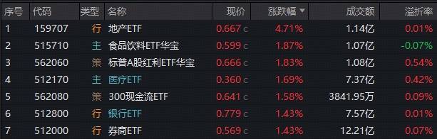 一、多重利好发酵,龙头地产大反攻!地产ETF(159707)暴涨4.71%领跑同类!机构:关注左侧布局机会